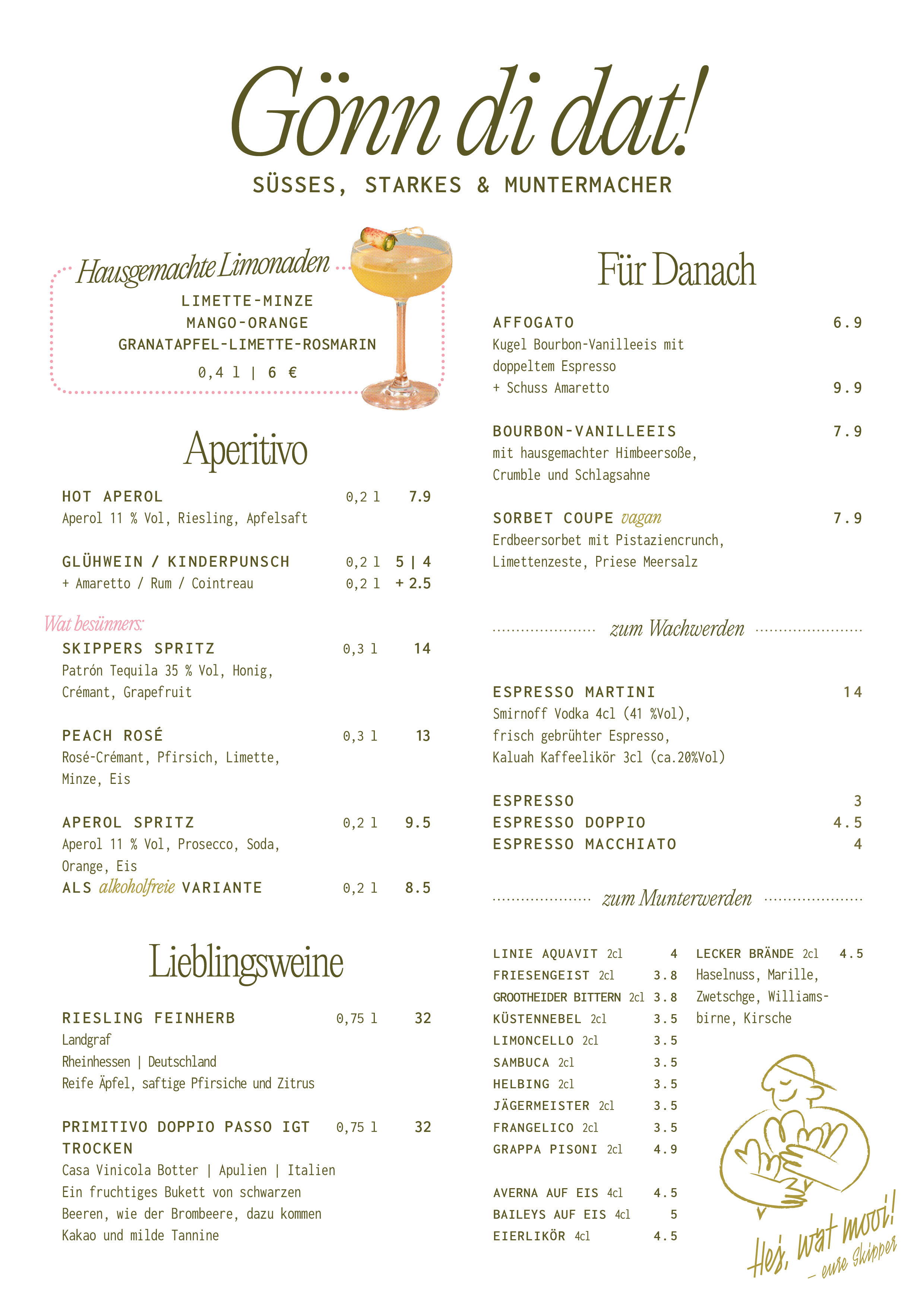 Gültig im Februar 2026. Unsere Service-Crew empfiehlt euch zudem saisonale Highlights und Tagesgerichte direkt am Tisch.